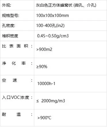 五,性能參數(shù),以下是蜂窩狀VOC吸附沸石分子篩性能技術(shù)參數(shù):