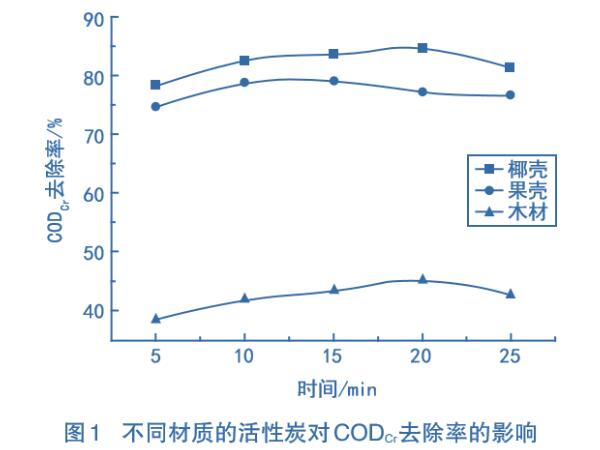 1、活性炭材質(zhì)對(duì)CODcr去除率的影響